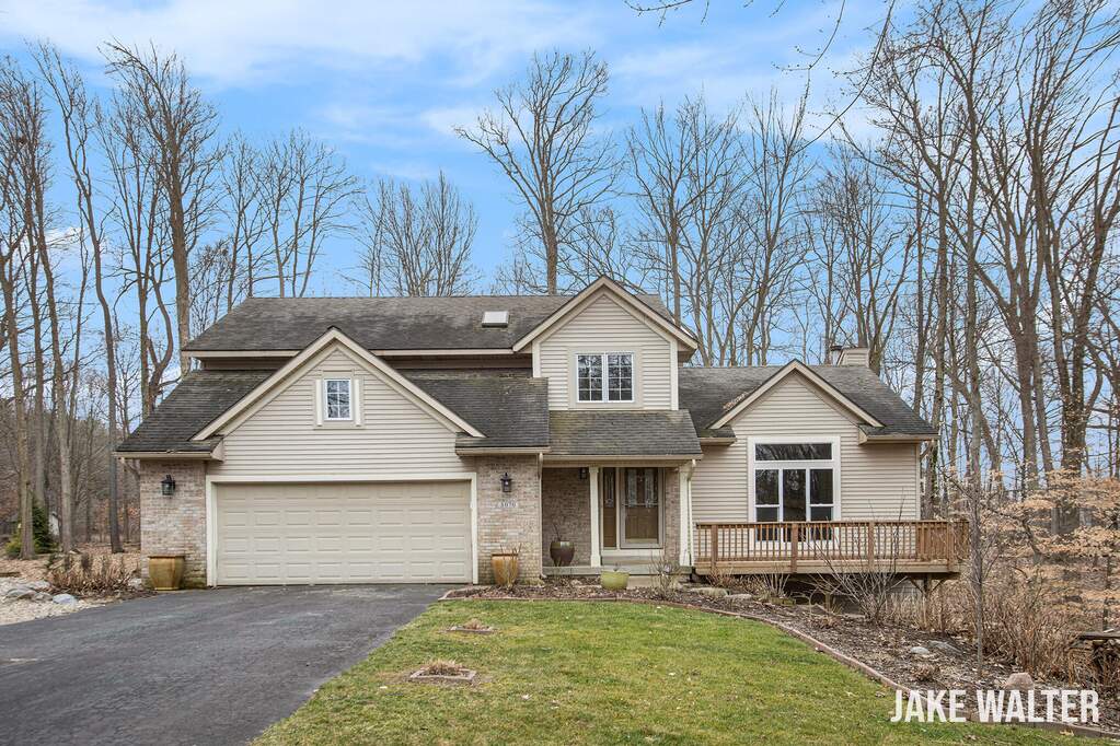 WOW! This spacious home on 1.55 acres is a must see. The home is on a cul-de-sac street & backs up to woods. The sellers have added so much to this home including a front deck & a larger deck on the back looking out on the woods. You'll love the living room w/ cathedral ceilings, newer oak flooring, a new window looking out to the large front yard & a newer warm gas fireplace. The large dining & entry also have newer oak flooring. The spacious kitchen has lots of cabinet & pantry space, granite counters & stainless appliances. A half bath & laundry finish off the main floor. Upstairs is a large master suite w/ walk in closet, large stand up shower, & tub. 2 more bedrooms & a full bath are also upstairs. The walkout basement has a large rec room with newer wood stove & kitchenettealong with another full bath. There is also a large utility/storage room. The seller recently had the main floor painted, and also replaced some carpet upstairs and in the rec room along with a new tile floor in the bathroom. If you love the outdoors, you'll love this lot. The seller took out a number of trees to add some yard space, but there is still lots of woods to enjoy. There is a small fence in the back yard along with an invisible dog fence. Some of the many features include a Generac whole house generator, lots of great landscaping and leaf guard on the gutters. Don't miss this great home in a great neighborhood not far from M6, M37 and 96. Call today!